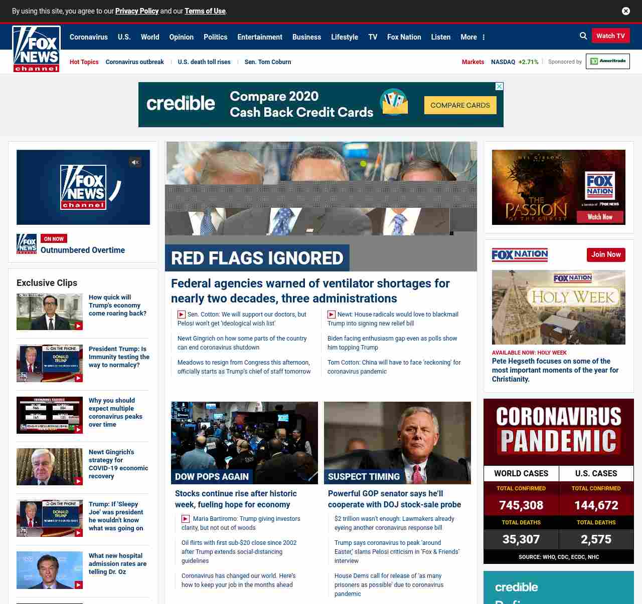 ="https://www.foxnews.com/politics/federal-agencies-warned-of-ventilator-shortages-for-nearly-two-decades">Federal agencies warned of ventilator shortages for nearly two decades, three administrations